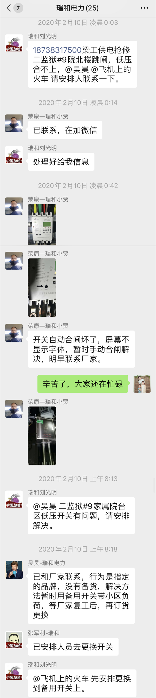 2月10日凌晨00:03,公司接到業主故障報修,“供電應急小組”迅速作出回復,并派技術工程師及時趕赴現場,進行事故處理,并于第二日迅速聯系廠家,快速更換零配件,保證了業主的正常供電。